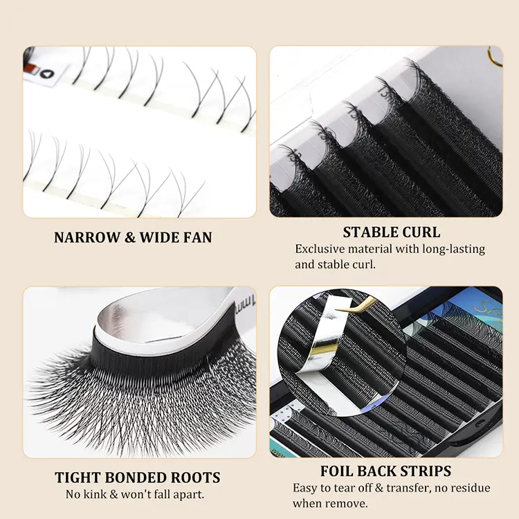 Dayanıklı ve sağlam: Tek kirpiklerle karşılaştırıldığında, W şeklindeki ön çiçek açan kirpiklerin uzun kök tasarımı, doğal kirpiklerle temas alanını artırabilir, bu da daha güçlü bir yapışma ve dayanıklılık sağlar.