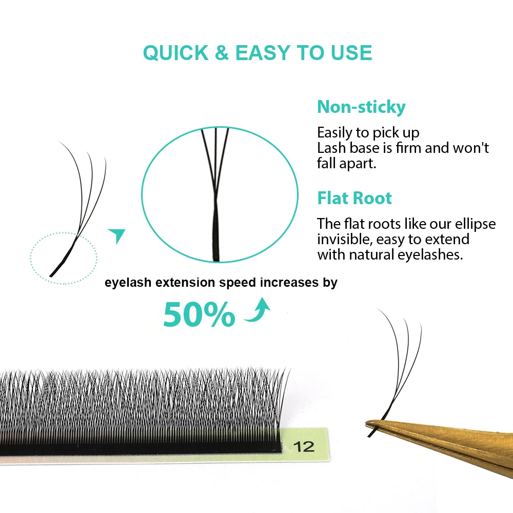 SP eyelash'in orijinal mikro fan tabanı tasarımı, uygulamadan sonra düşmeden veya değişmeden uzun ömürlü yapışmayı garanti etmek için tutkal bağlama alanını önemli ölçüde genişletirken, temiz ve daha fazla kirpik düzenlemesi sağlar. Eşsiz "çiçek açmayan" tasarım işlemi son derece basitleştirir-profesyonel düzeydeki hacimli efektler, profesyonel beceriler olmadan kolayca elde edilebilir, kirpik uzatma süresini büyük ölçüde kısaltır ve iş verimliliğini%50 artırır.