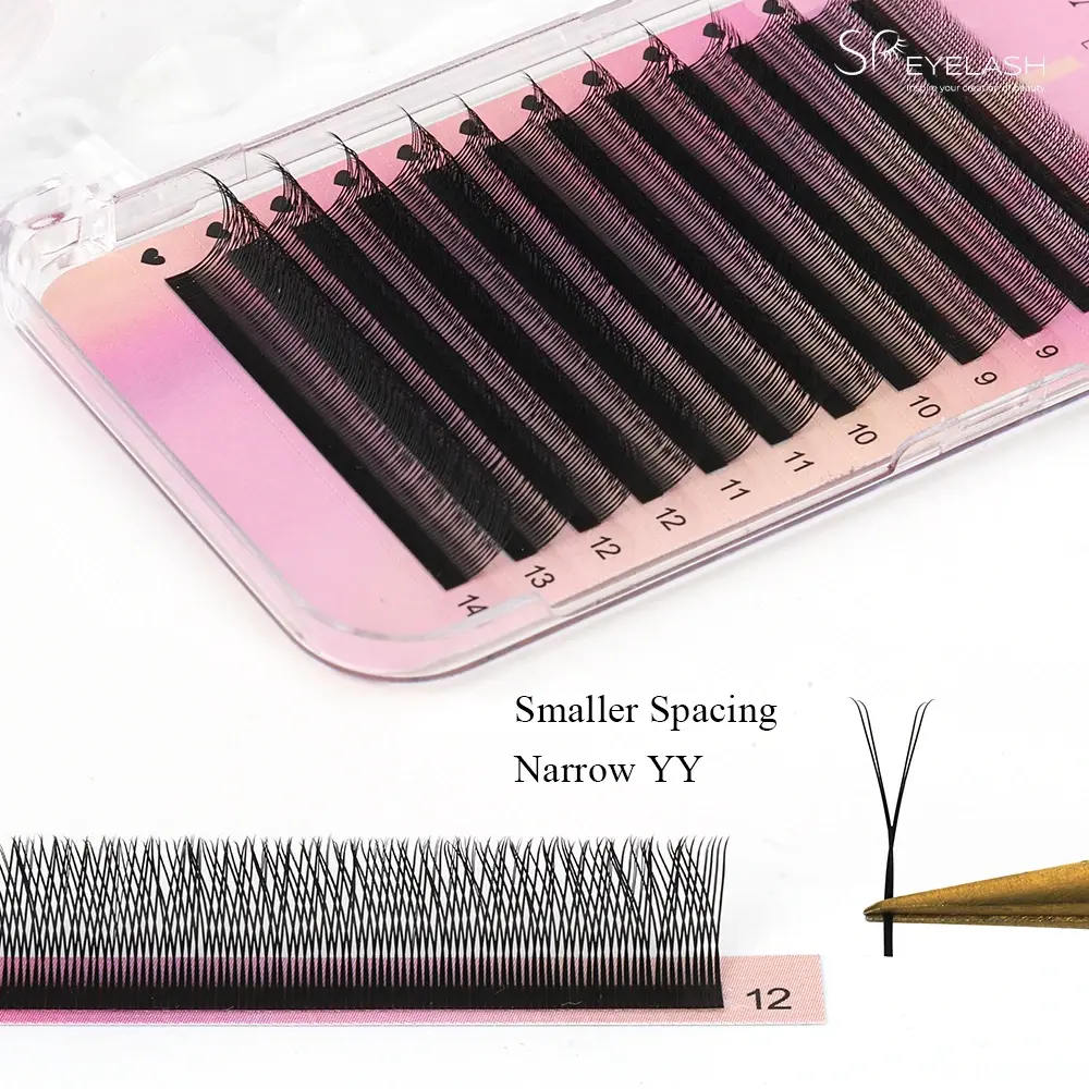 Geleneksel YY şekilli kirpiklerle karşılaştırıldığında, yükseltilmiş dar YY kirpik uzantılarımız, sorunsuz bir şekilde bağlı ve daha hacimli bir kirpik efekti yaratarak daha küçük bir açıklık ve daha pürüzsüz çizgiler içerir. Kompakt düzenleme, kirpikler arasındaki boşlukları azaltarak doğal ama dramatik bir dolgunluk yaratır. Daha yüksek yoğunluklu kirpik düzenlemesi daha derin ve daha dolgun kirpik çizgilerini şekillendirirken, daha dar fan tasarımı daha temiz ve daha fazla görünüm sağlar. Bu arada, genişletilmiş bir kirpik bandı ile eşleştirilmiş olan daha küçük fan tabanı, daha büyük bir bağlanma alanı oluşturur, böylece yapışma ve dayanıklılığı artırır ve geniş Fan-şekilli kirpiklerle meydana gelebilecek karışıklık ve eşitsizliği önler.